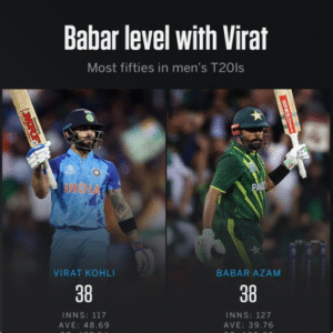 پاکستان کرکٹ ٹیم کے سابق کپتان بابراعظم نے ٹی 20 انٹرنیشنل کرکٹ میں سب سے زیادہ نصف سنچریاں بنانے کا بھارت کے سابق کپتان ویرات کوہلی کا ریکارڈ برابر کردیا۔