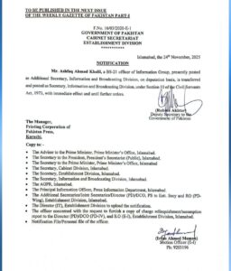 وزارت اطلاعات کے سینئر افسر اشفاق احمد خلیل وفاقی سیکریٹری اطلاعات و نشریات کے عہدے پر تعینات