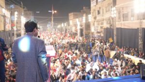 ایم کیو ایم پاکستان کے زیرِ اہتمام ملیر کھوکھرا پار بمقام گولڈن گراؤنڈ سے متصل روڈ پر منعقد جلسہ سے چیئرمین ڈاکٹر خالد مقبول صدیقی، گورنر سندھ کامران ٹیسوری و دیگر رہنماؤں کا خطاب