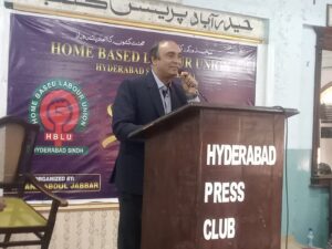 مہران پروگریسو فیڈریشن کے صدر اور سندہ سوشل سیکورٹی کی گورننگ باڈی کے ممبر واحد شورو، نیشنل ریفائنری کنٹریکٹ ورکرز یونین کے جنرل سیکرٹری شاکر محمود صدیقی، سانکو کے سی سی او سلمان جی ابڑو، سابق ایم پی اے فرحین مغل سمیت دیگر مقررین نے ہوم بیسڈ ورکرز بلخصوص خواتین کے مسائل و مشکلات پر روشنی ڈالتے ہوئے انہیں سوشل سیکورٹی سمیت دیگر سماجی تحفظ کے اداروں میں رجسٹریشن کو یقینی بنانے کا مطالبہ پیش کرتے کیا