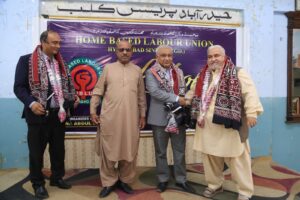 محترمہ عرفانہ عبد الجبار نے مہمان گرامی کو یونین کی جانب سے اجرک کا تحفہ پیش کیا جب کہ ہوم بیسڈ ورکرز کے مسلسل کام کرنے والی خواتین ورکرز کو ان کی جدوجہد کے اعتراف میں انھیں شیلڈ پیش کیں