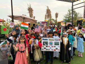 ایونٹ کی نمایاں سرگرمیوں میں بچوں کی ملٹی کلچرل پریڈ نے سب کی توجہ حاصل کی۔ پریڈ کا عنوان “سعودی عرب ایک ملٹی کلچرل ملک ہے” رکھا گیا تھا، جس کے تحت بچوں نے دنیا کے مختلف ممالک کی روایتی ثقافت کو اپنے لباس اور جھنڈوں کے ذریعے پیش کیا۔ حاضرین نے اس سرگرمی کو بے حد پسند کیا۔