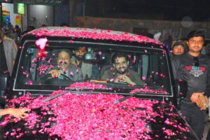 پنوعاقل: چیئرمین ڈسٹرکٹ کونسل سکھر سید کمیل حیدر شاہ نے پنوعاقل میں شاہ زمان اندڑ اور قمرالدین اندڑ کی جانب سے دی گئی عشائیہ دعوت میں شرکت کی، اس موقع پر سید کمیل حیدر شاہ کا پھولوں کی پتیوں سے والہانہ استقبال کرتے ہوئے خوش آمدید کہا گیا۔