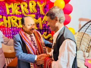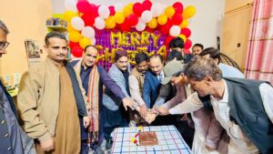 ڈاکٹر شام سندر آڈوانی، سید اعجاز حسین شاہ بخاری اور دیگر معززین نے ریاض شیر مسیحی کے ہمراہ کیک کاٹا اور مسیحی برادری کو کرسمس کی مبارکباد پیش کی۔