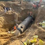 سی ای او واٹر کارپوریشن انجینئر سید صلاح الدین احمد کی ہدایت پر یونیورسٹی روڈ پر پانی کی 84 انچ ڈایا مین لائن کی مرمت کا کام تیزی سے کیا جارہا ہے