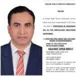 سروسز انسٹیٹیوٹ آف میڈیکل سائنسز کے شعبہ نیورو سرجری کے انچارج ڈاکٹر محمد اجمل خان،پنجاب پبلک سروس کمیشن سے پروفیسر آف نیورو سرجری منتخب،نوٹیفیکیشن جاری