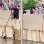 کراچی میں شہریوں نے بارش کے بعد نالے میں پھنسے بلی کو بچایا